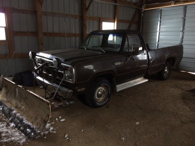 Here is my 1979 W-150 Sno-Commander. 318 2bbl, 727, 8 3/8 rear end. Attacks the snow very good with the full-time 4wd. I am curious what came in this factory package. I know higher amp alternator, and mine drives like a 3.21 with "Sure-grip" I only use it to service my Minnesota property. My driveway is 2/10 of a mile long. I think I am 3rd owner. 79k miles. It came out of Wisconny and appears used for snow use only. Body is rusted and pounded, but I changed the fluids, rebuilt the Holley 2bbl, and it runs smooth. Tranny does not slip. Also put in new wiper motor, and made sure the defroster works with some heat. Gas gauge no longer connected, but this is so much better to service the property then attaching a snow blower to the John Deere lawn tractor. View attachment 14500